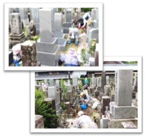 会員さん方で墓地の清掃です。 代わりにお手伝い。と、数名のご主人も出てくださり、きれいに草を採っていただきました。 皆さま、暑い中、誠にありがとうございました。