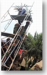 役員さんにお世話になり、ソテツと墓の西側の茶木や槇の剪定をしていただきました。