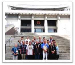 昼食は道頓堀川畔にある大和屋本店で、お弁当と熱々の明石焼きをを頬張り、午後から聖徳太子ゆかりの四天王寺を参拝です。