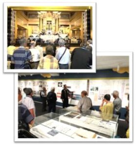 別院内の北御堂ミュージアムでは職員の藤原さんより、蓮如上人の石山本願寺建立や当時を再現したジオラマ、その後の戦国時代合戦などの歴史。