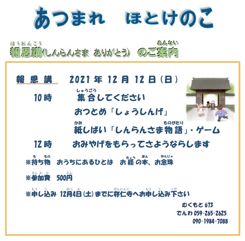慈光照護のもと皆さまにはお念仏ご相続と、健やかにお過ごしのことと存じます。