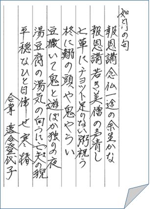 2月は20日(木)は例会です。お内仏にておつとめさせていただきます。