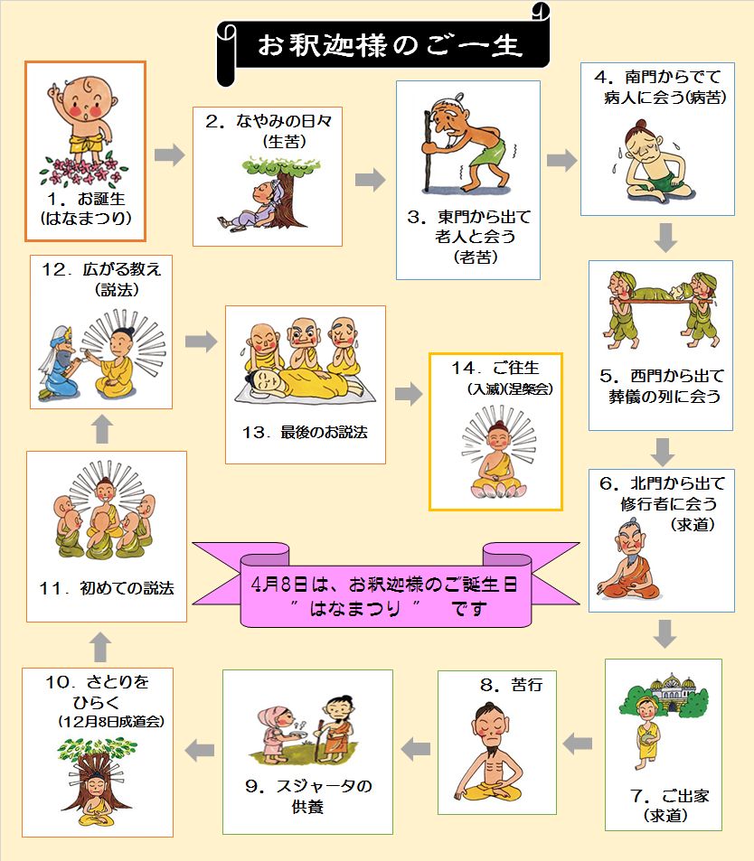 もうすぐ”はなまつり”です。お釈迦様のご一生を知っておきましょう!
