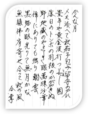 最近、夕焼け空に赤トンボが群れ飛ぶ風景に秋の訪れを感じる候と相成りました。