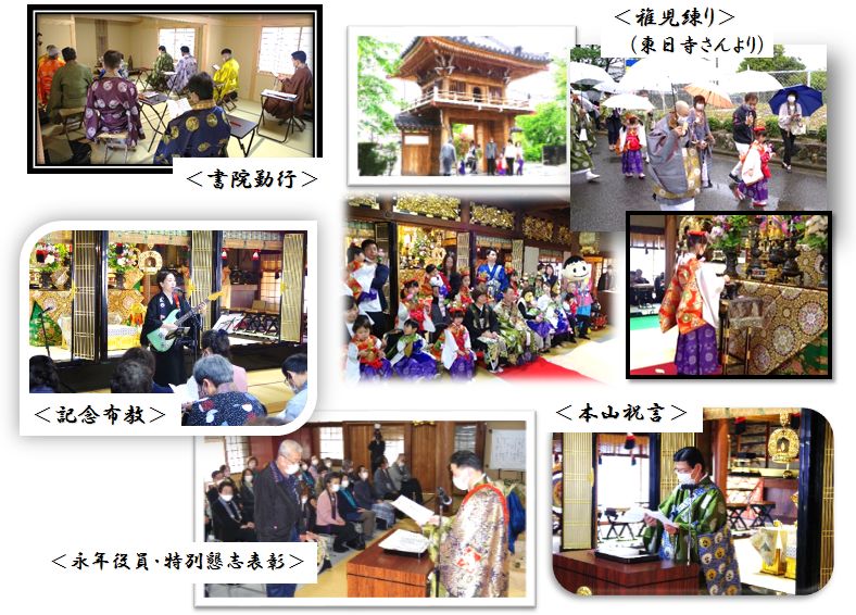 12:00より書院勤行,庭儀,稚児練り、14:00から宗祖讃仰作法、音楽法要、
