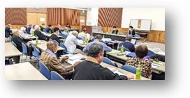 芸濃庁舎にて昨年度の事業・決算報告、今年度の役員、「御同朋の社会をめざす運動」計画、事業・予算の審議・承認がされ、教務所よりご輪番、職員より別院の法要など伝達がなされました。