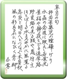 江戸時代中期の俳人・山口素堂が詠んだ表題の句のように青葉、若葉が美しい季節と相成りました。