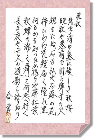 近年の流行禍では月を観る余裕さえ奪われてしまいましたが、落ち着きを見せ始めたこともあり、私が参加する俳句教室も再開されることとなり、句友とともに観月し、創作を楽しみました。